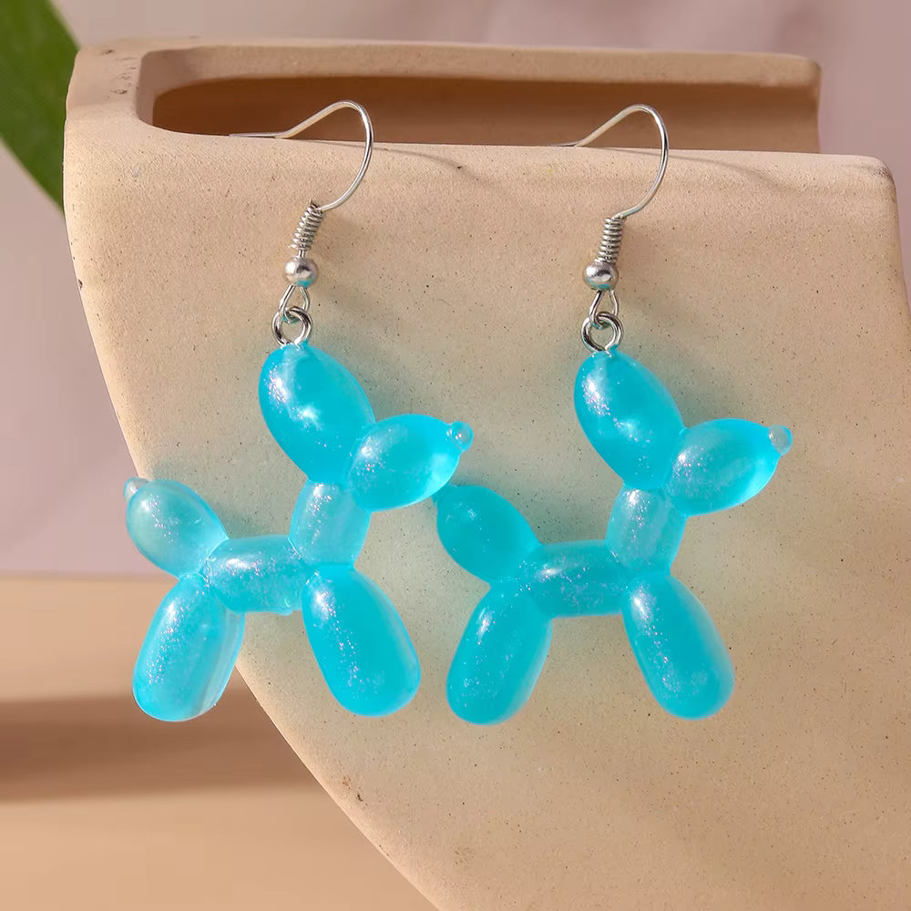Acrylic Balloon Dog Transparent blue Design Drop Dangle Earrings