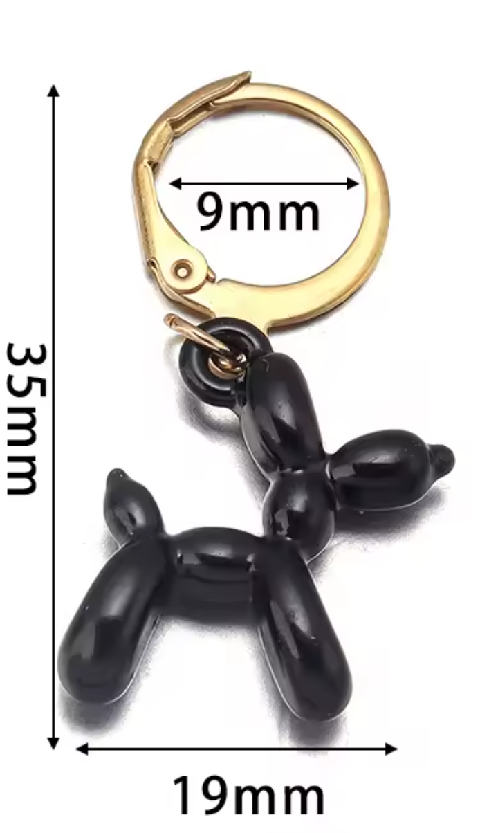 Purplish Red metal Balloon Dog Dangle Pendant Earrings